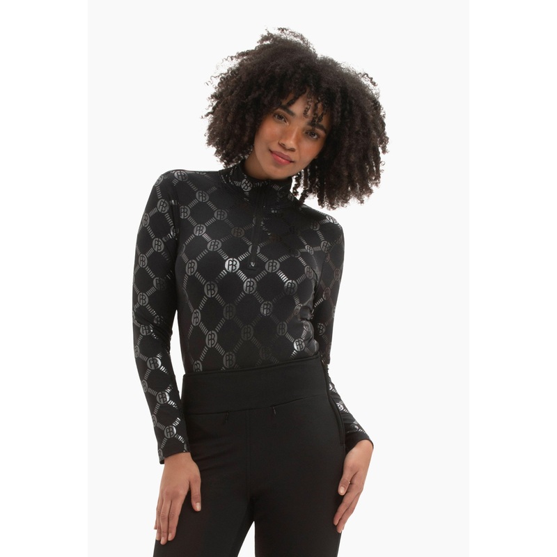 Poivre Blanc Mia Ski Base Layer Top in Black Monogram Print
