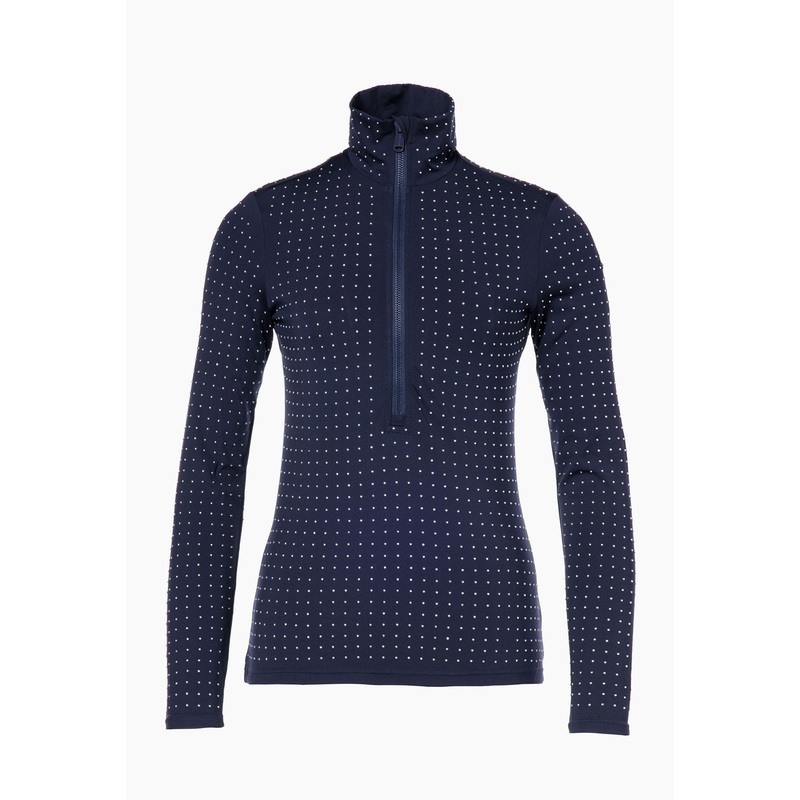 Beautiful blue ski base layer with tiny faux pearl details all over it. Goldbergh’s Marie is one of the best ski thermals for women. Its durable stretchy fabric removes moisture from the inside whilst insulating you from the cold air at the same time.