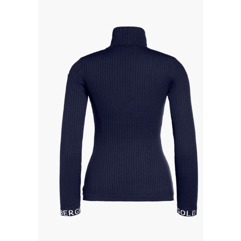 Mira is Goldbergh’s blue women’s poloneck jumper. A beautiful skiing poloneck top for ladies. Goldbergh have created this knit base layer in French blue with ribbed knit style. Made from a blend of merino wool and polyamide creating a luxurious feeling ski base layer, this top can be worn on or off the ski slopes.