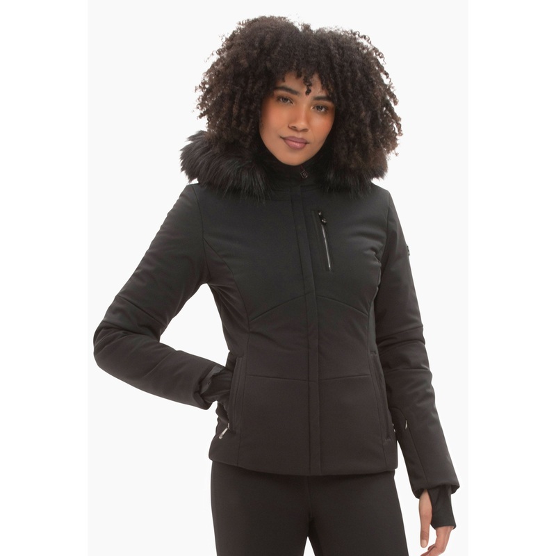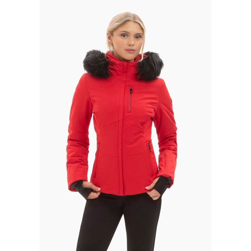 - Poivre Blanc red stretch ski jacket with faux fur hood